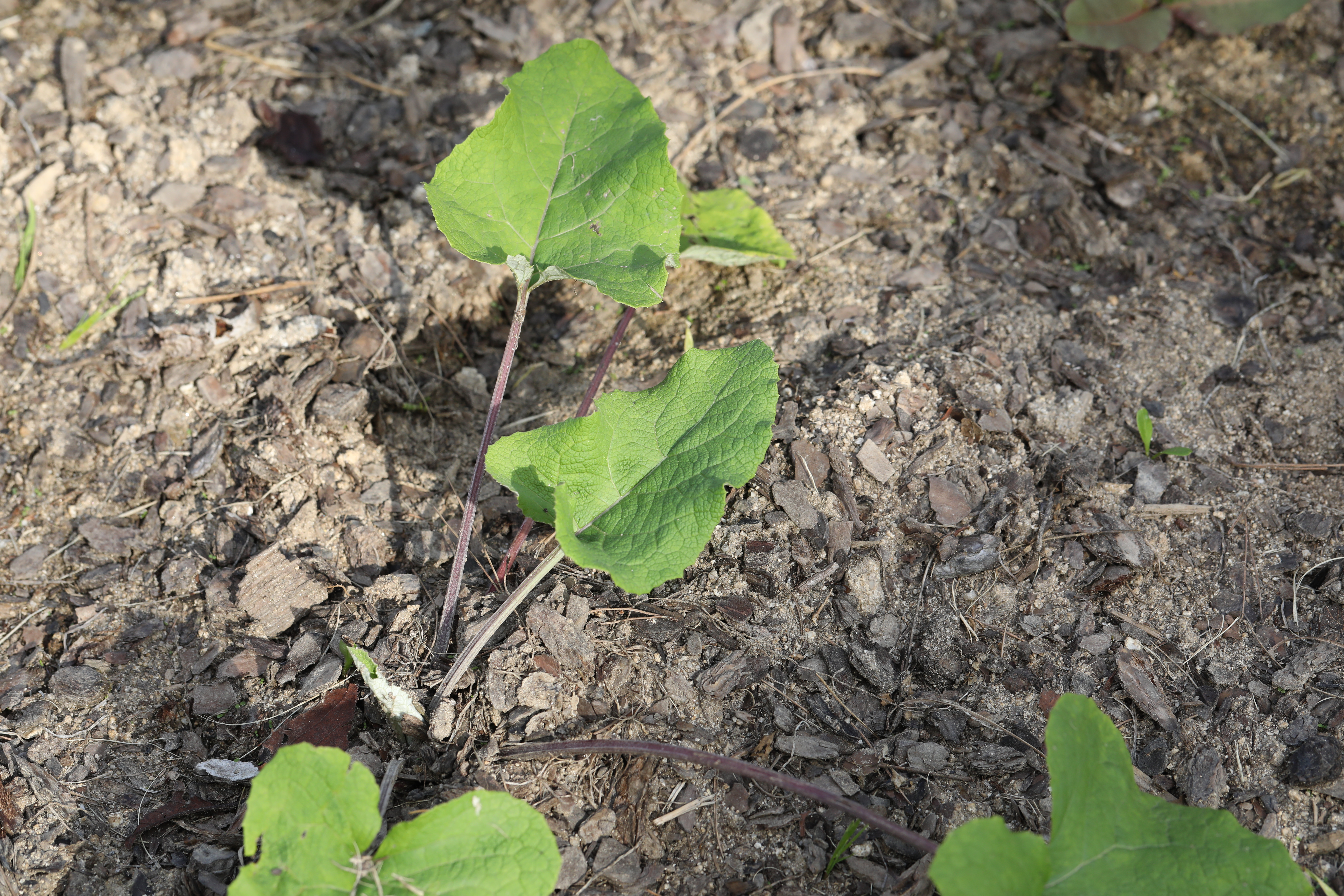 우엉 뿌리는 길이가 30cm에서 60cm에 달할 정도로 곧게 땅속으로 깊이 들어가는 특징이 있습니다. 이러한 뿌리의 형태는 우엉이 땅의 기운과 영양을 얼마나 깊이 흡수하며 자라는지를 보여줍니다.