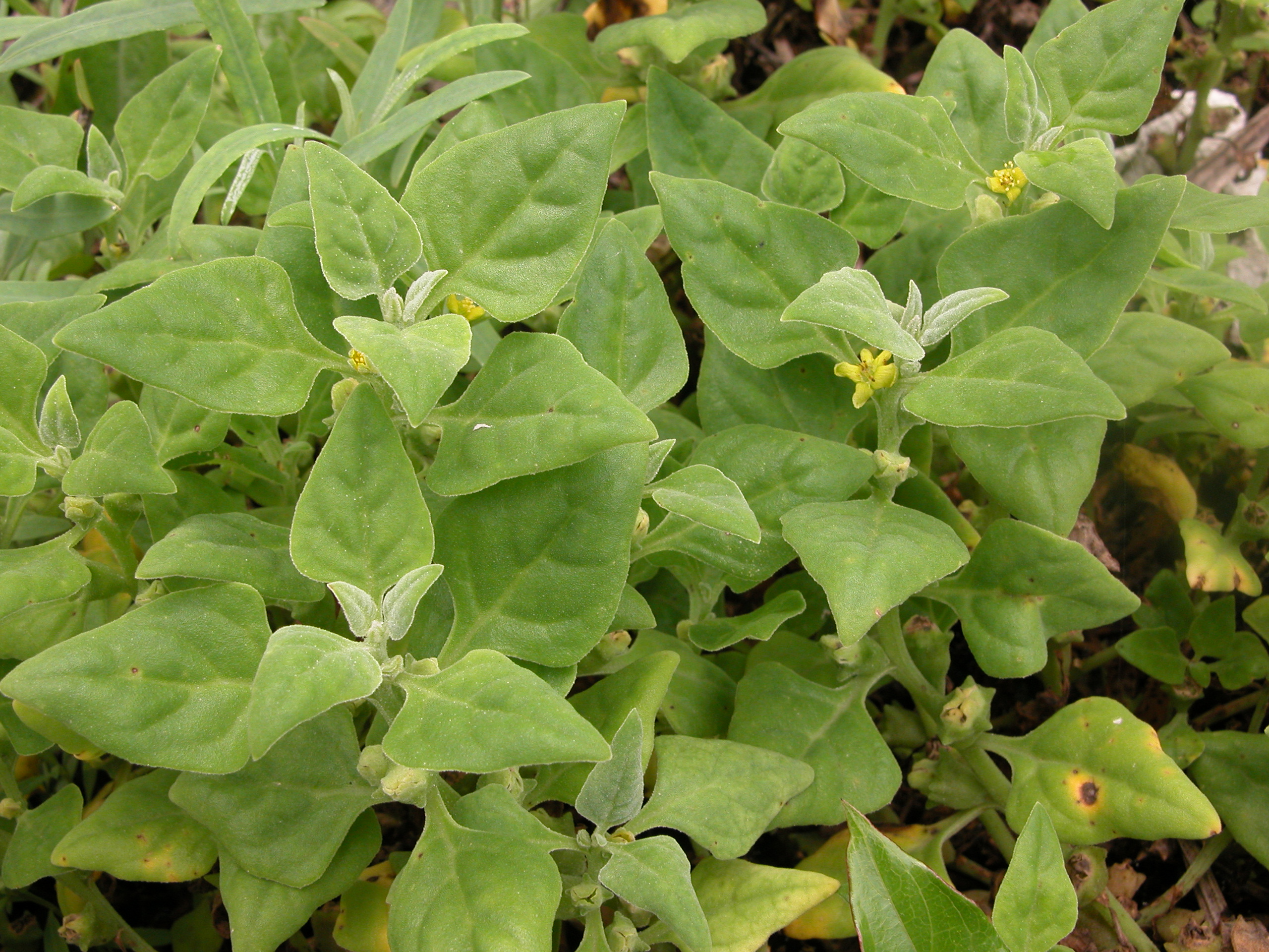 잎은 어긋나게 달리며 삼각상 난형(세모꼴 계란형)을 띠고 있습니다. 새 잎에는 은색 가루가 붙어 있는 듯한 독특한 모습도 보입니다. 1년 내내 나물이나 국거리용, 반찬으로 해 먹기 좋다고 합니다.