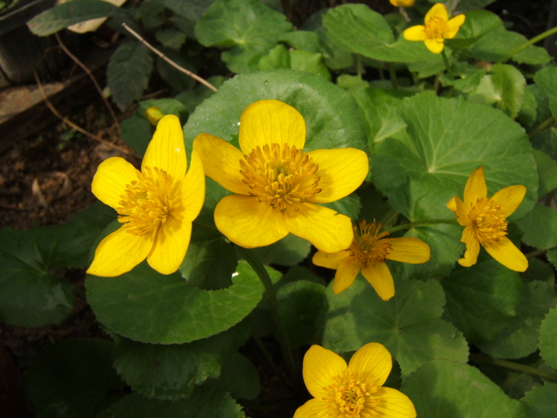 매쉬 메리골드의 꽃은 밝은 노란색으로, 봄철에 피어나 잎은 둥글고 넓으며, 물가에서 자라기에 적합한 구조를 가지고 있습니다.